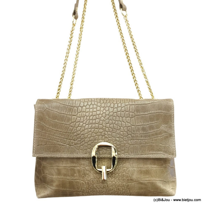 Parissima, grossiste sacs à main et maroquinerie à Paris dans le quartier du Marais, vous présente ce sac à bandoulière chaîne en cuir véritable grainé avec un rabat et son fermoir métallique tourniquet 0922550.
