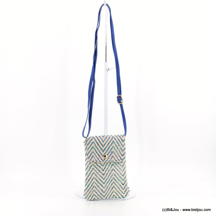 Parissima, grossiste sacs à main et maroquinerie à Paris dans le quartier du Marais, vous présente cette pochette souple pour smartphone en fils tressé de coton et de polyester métallisé avec une bandoulière en synthétique 0923036.