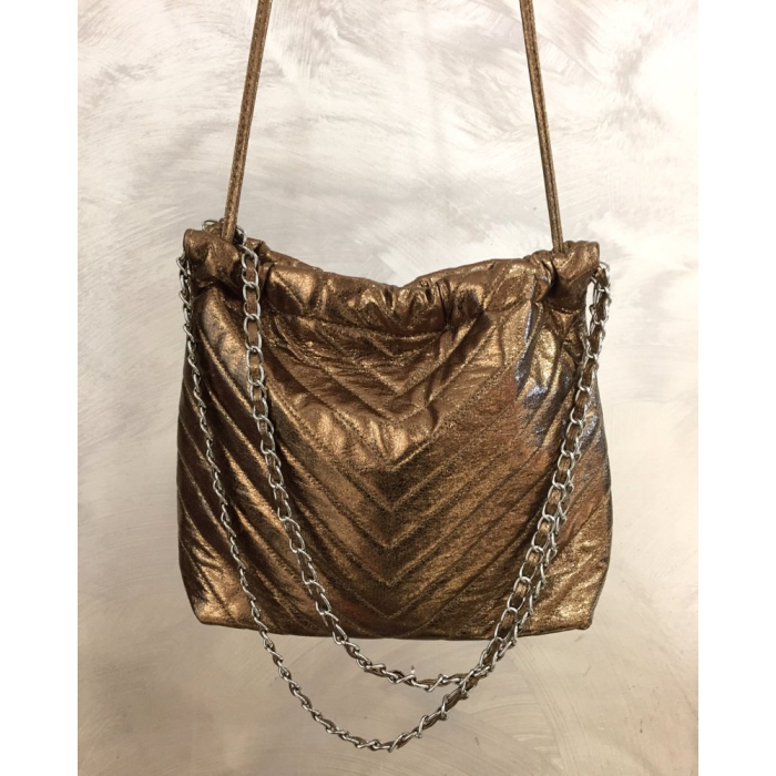 Parissima, grossiste sacs à main et maroquinerie à Paris dans le quartier du Marais, vous propose ce sac à main en simili-cuir souple brillant matelassé , à double lanières, porté épaule ou bandoulière pour femme 0923532.