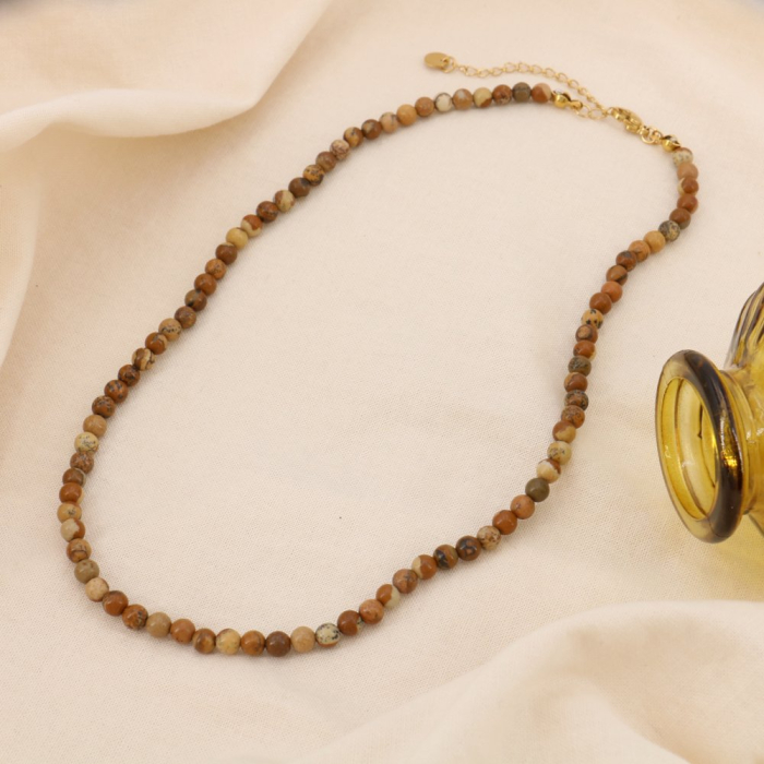 Parissima, meilleur fournisseur de bijoux en acier inoxydable à Paris dans le quartier du Marais, vous propose ce collier en acier inoxydable avec des billes de 4 mm en pierre pour femme 0124605.