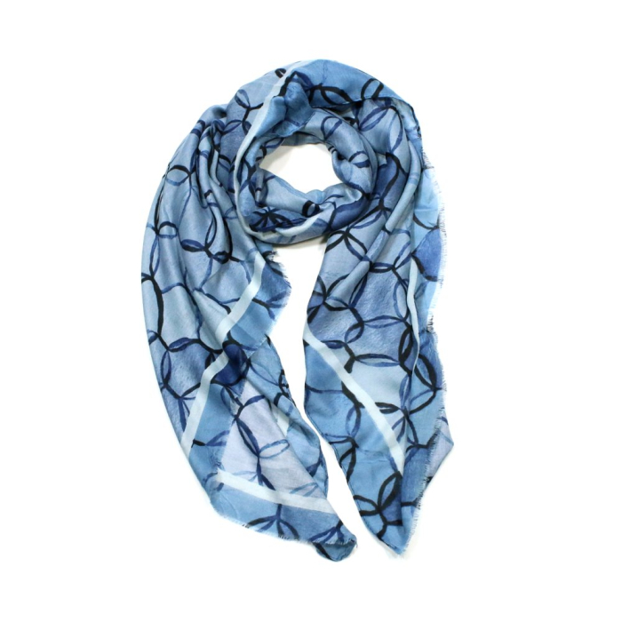 Avec son imprimé géométrique inspiré de cercles entrelacés, ce modèle allie modernité et élégance discrète. Sa texture douce et légère en fait un compagnon idéal pour les saisons intermédiaires, tout en apportant une note graphique à toutes les tenues.