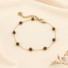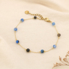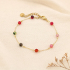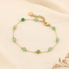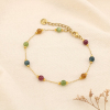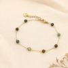 Ce bracelet en acier inoxydable et pierres naturelles séduit par son raffinement et sa finesse. Chaque perle de 4 mm, minutieusement polie, reflète la beauté unique de la pierre naturelle. Montées sur une fine chaîne dorée, ces pierres colorées confèrent au bijou une allure à la fois élégante et naturelle, parfaite pour une touche de lumière au poignet.