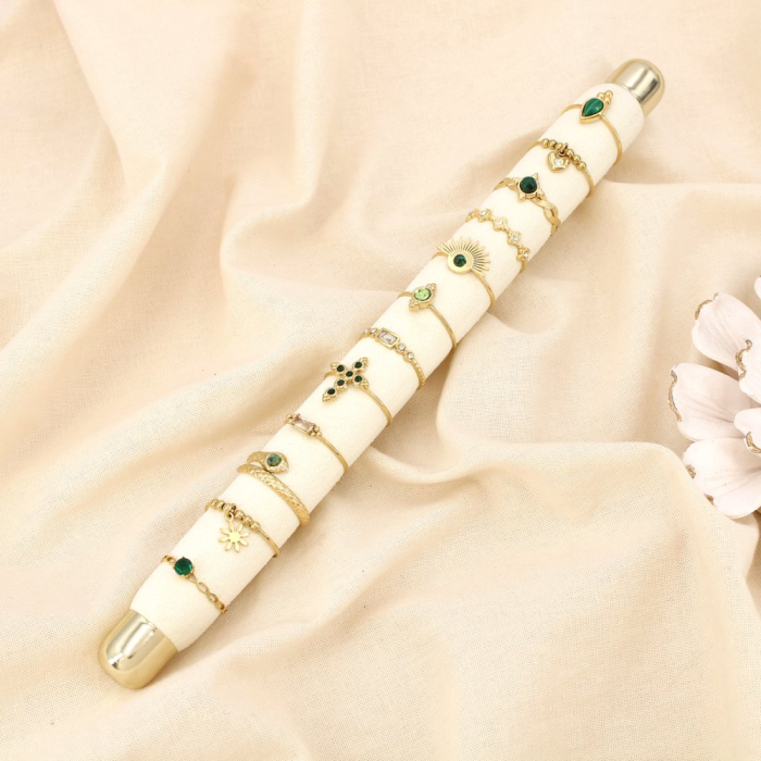 Cet ensemble de 12 bagues ouvertes en acier inoxydable est conçu pour répondre aux attentes des professionnels de la mode et de la beauté à la recherche d’une offre complète, cohérente et immédiatement exploitable en point de vente. Chaque bague présente un design distinct, associant lignes contemporaines, détails décoratifs et incrustations colorées, pour composer une sélection harmonieuse et attractive.