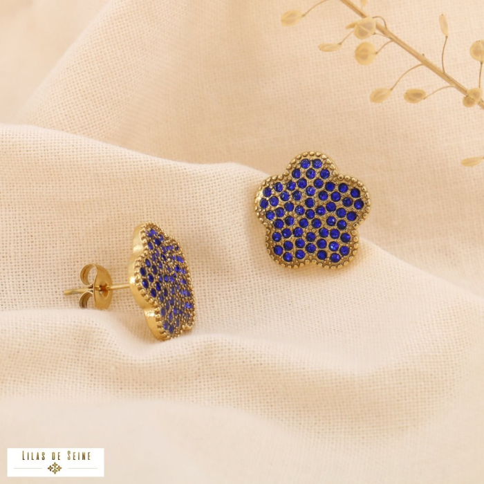 Chaque paire présente une fleur sertie de strass scintillants, offrant un équilibre idéal entre sophistication et modernité. Leur format stud assure un porté confortable au quotidien, tout en apportant une touche lumineuse aux tenues urbaines comme aux silhouettes plus habillées.