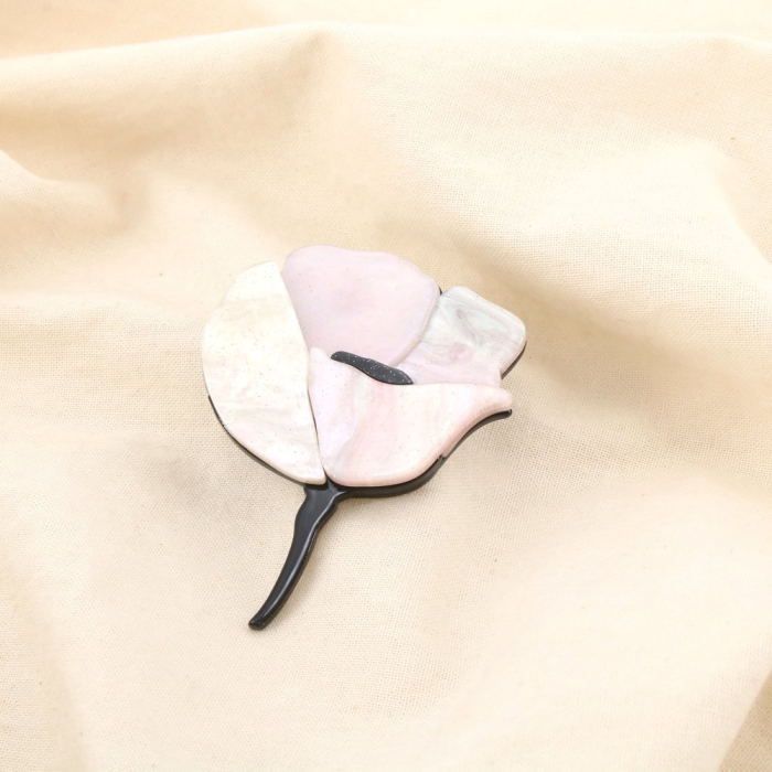 Apportez une touche rétro chic aux collections de vos clientes avec cette broche à épingle fleur stylisée, inspirée de l’esthétique vintage. Réalisée en résine marbrée associée à une base en métal, elle séduit par son design floral graphique et ses finitions soignées, idéales pour enrichir une offre d’accessoires de mode tendance.