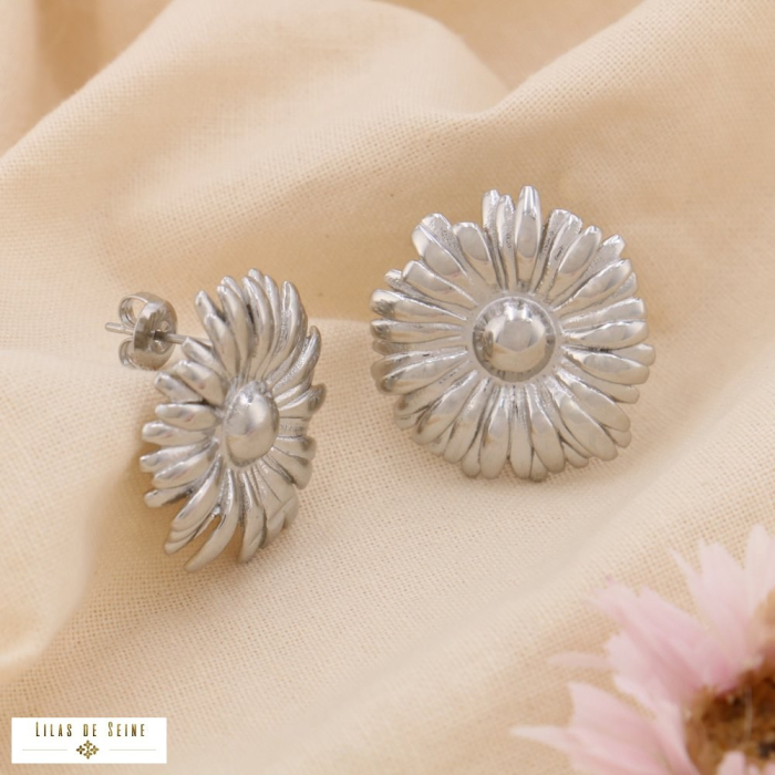 Lumineuses et élégantes, ces boucles d’oreille en acier inoxydable séduisent par leur forme de fleur stylisée aux pétales rayonnants. Inspirées des motifs floraux et solaires, elles apportent une touche chaleureuse et féminine, tout en s’inscrivant dans une esthétique à la fois intemporelle et tendance.