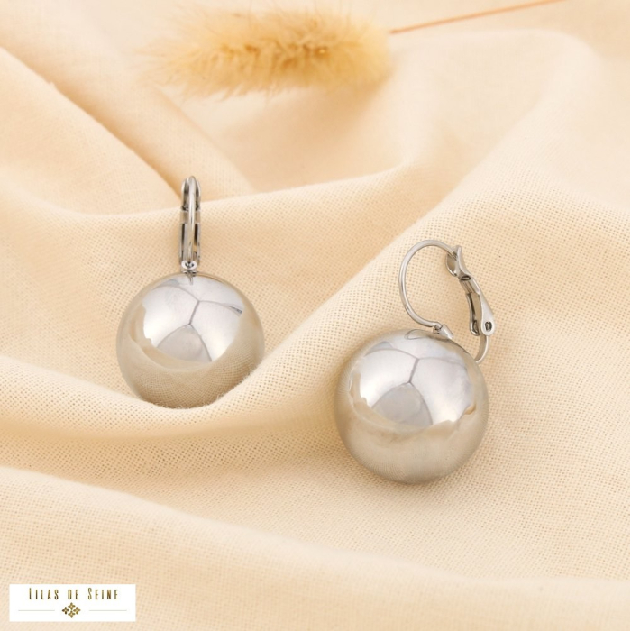 Montées sur un fermoir dormeuse pour oreilles percées, elles offrent un maintien sécurisé et un confort optimal au quotidien. Avec un diamètre de bille d’environ 18 mm, ces boucles d’oreille présentent un volume équilibré, idéal pour structurer le visage sans excès. Disponibles en doré et argenté, elles s’intègrent facilement dans une sélection de bijoux essentiels à destination des professionnelles de la mode, de la beauté et des concept-stores.