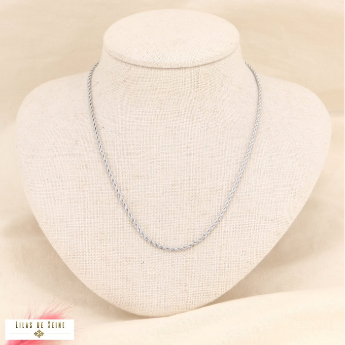 Élégante et intemporelle, cette chaîne en acier inoxydable à maille corde torsadée séduit par son design raffiné et sa brillance subtile. La maille torsadée, composée de fils finement entrelacés, crée un effet de relief délicat qui capte la lumière avec élégance, faisant de ce bijou un essentiel du vestiaire féminin.