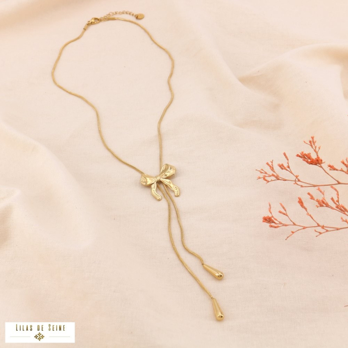 Ajoutez ce collier en Y en acier inoxydable avec pendentif nœud et gouttes à votre sélection et enrichissez votre offre avec un bijou élégant, tendance et à forte valeur perçue. Disponible en gros dès maintenant sur parissima.com.