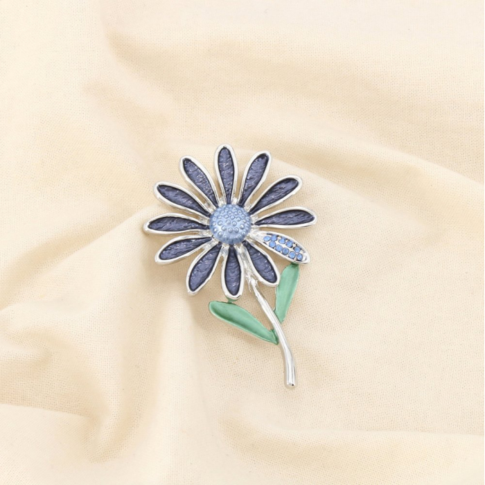 Cette broche aimantée en métal émaillé s’inspire de la fleur marguerite pour offrir un design délicat et lumineux. Les pétales élancés, soulignés par des contours métalliques soignés, sont rehaussés d’un émail aux nuances subtiles. Le cœur texturé apporte du relief, tandis que le détail latéral orné de strass ajoute une touche d’éclat maîtrisée. Un bijou fantaisie élégant, pensé pour compléter une offre d’accessoires mode féminins et raffinés.