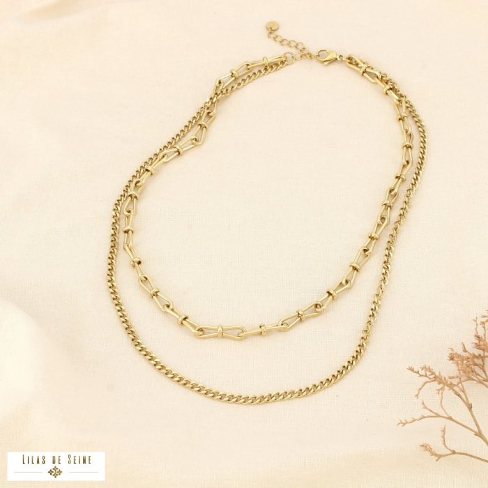 Affirmez une silhouette contemporaine avec le collier double chaînes en acier inoxydable référence 0126004. Ce modèle associe deux mailles complémentaires – une chaîne structurée graphique et une maille gourmette – pour un rendu moderne, urbain et parfaitement dans l’air du temps.