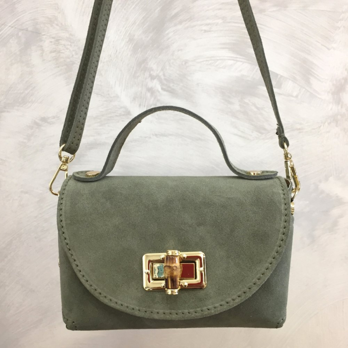 Conçu en cuir véritable à l’aspect suédé, ce sac séduit par son toucher velouté et son rendu haut de gamme. Sa structure rigide et son rabat arrondi lui confèrent une silhouette élégante et parfaitement définie, idéale pour valoriser vos vitrines.